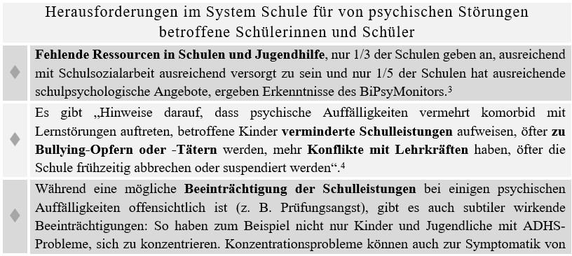 Übersicht: Herausforderungen im System Schule für von Psychischen Störungen betroffene Schülerinnen und Schüler