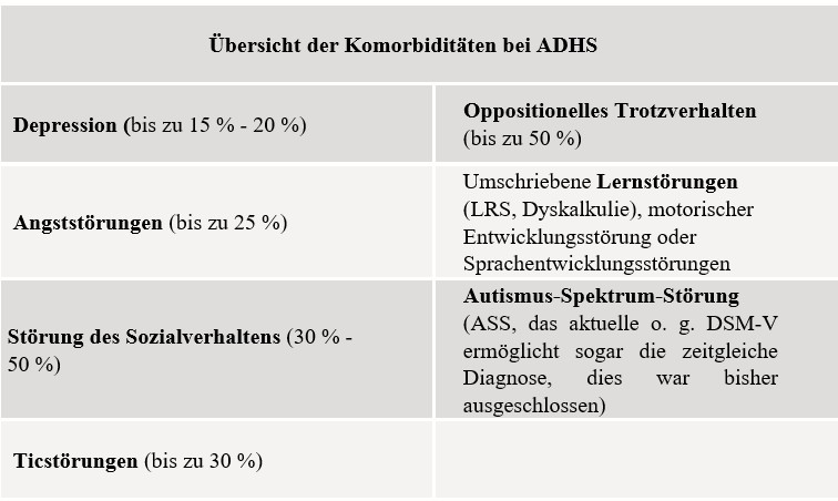 Übersicht der Komorbiditäten bei ADHS